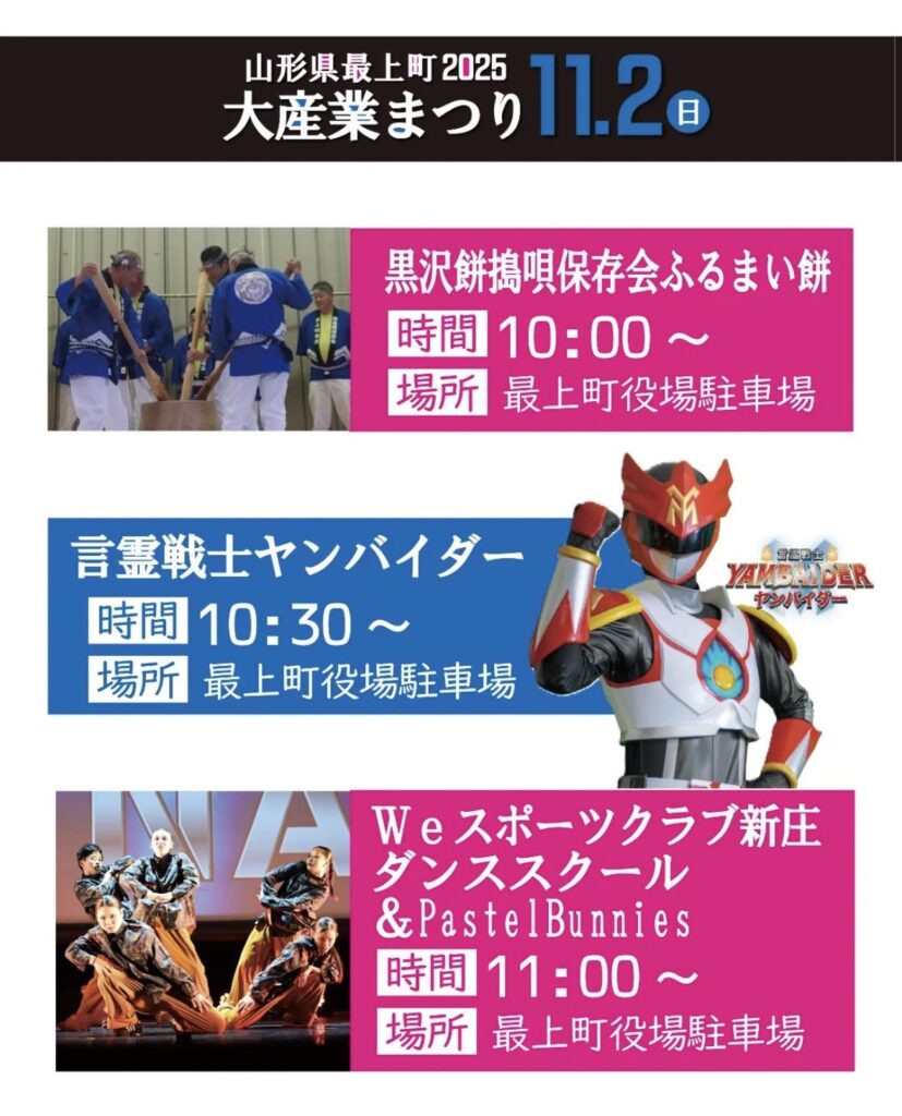 10:30〜ミニヒーローショー。最上町役場駐車場です。